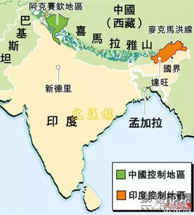中印实际控制线就是非法的“麦克马洪线”。印度地图已经将其作为它的正式、合法边界,并于1987年宣布成立了“阿鲁纳恰尔邦”。